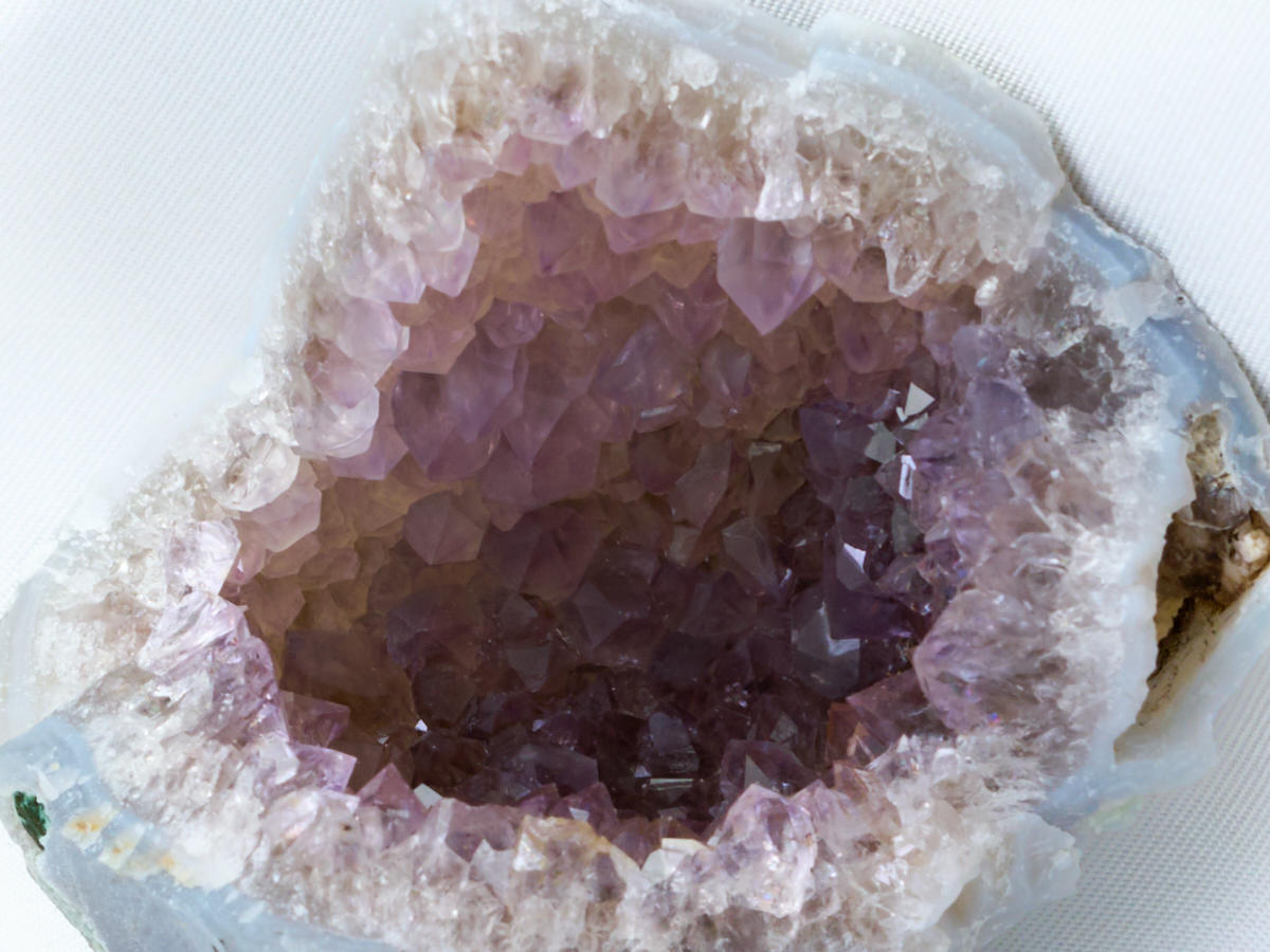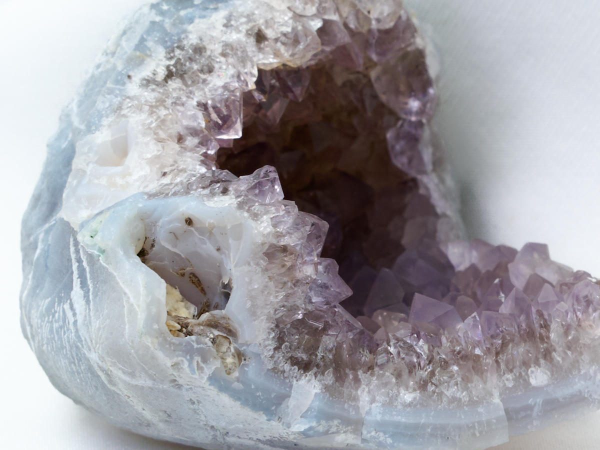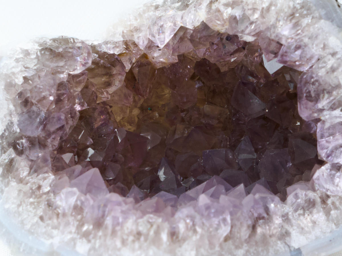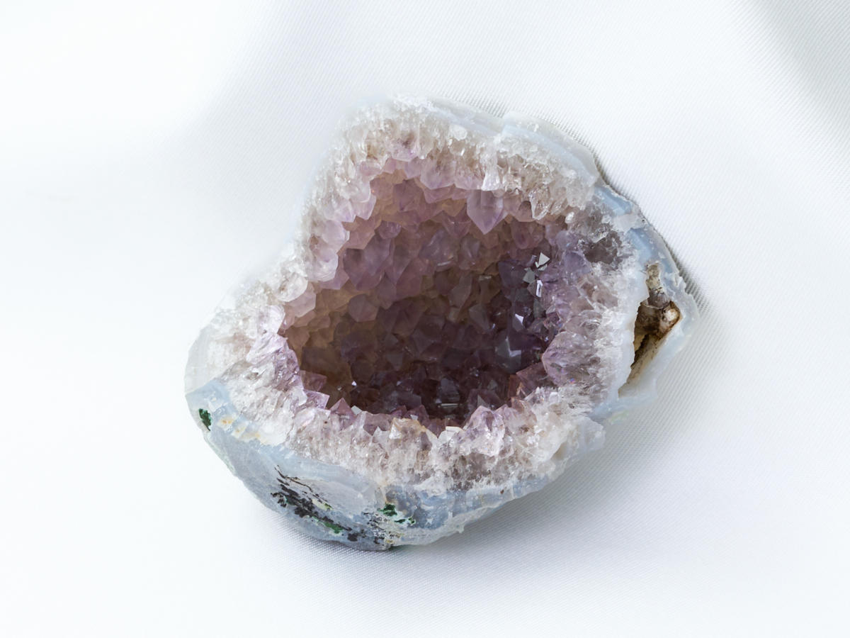 ジオード状(晶洞)のアメシスト原石です。珍しいインド産のラベンダー・アメシストです。